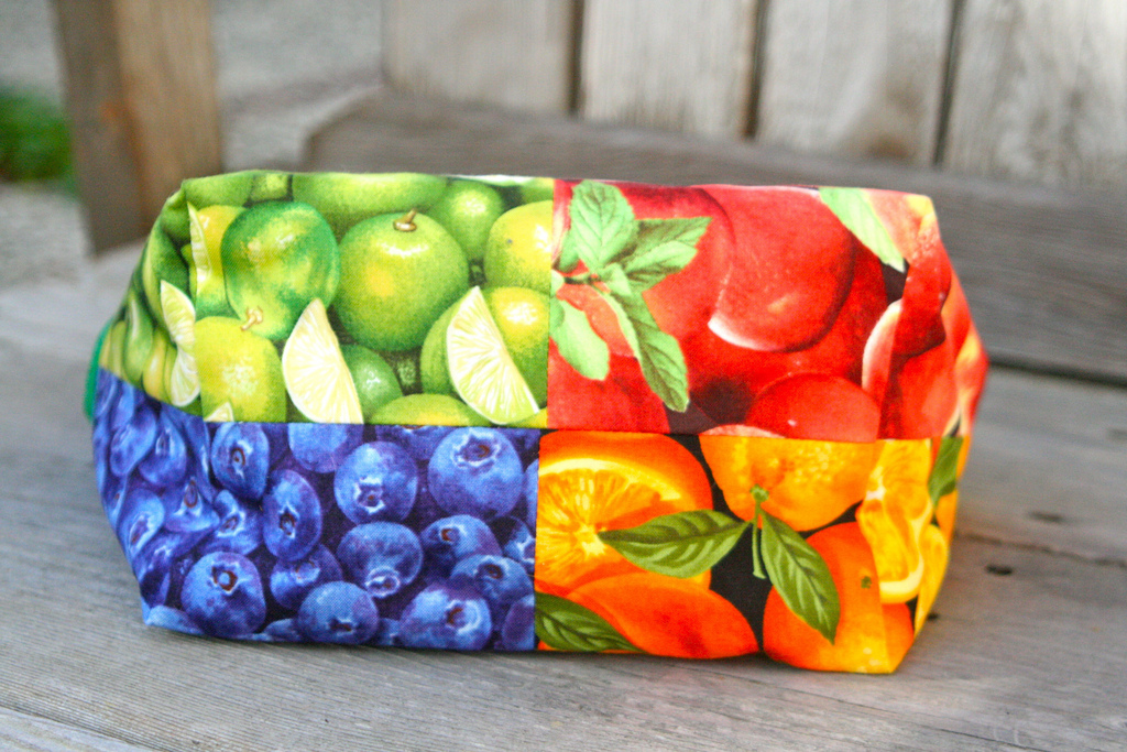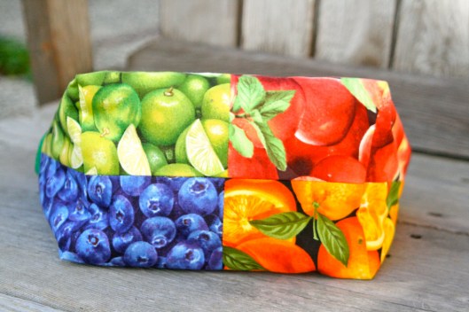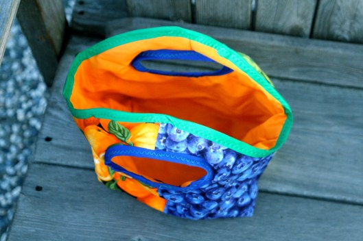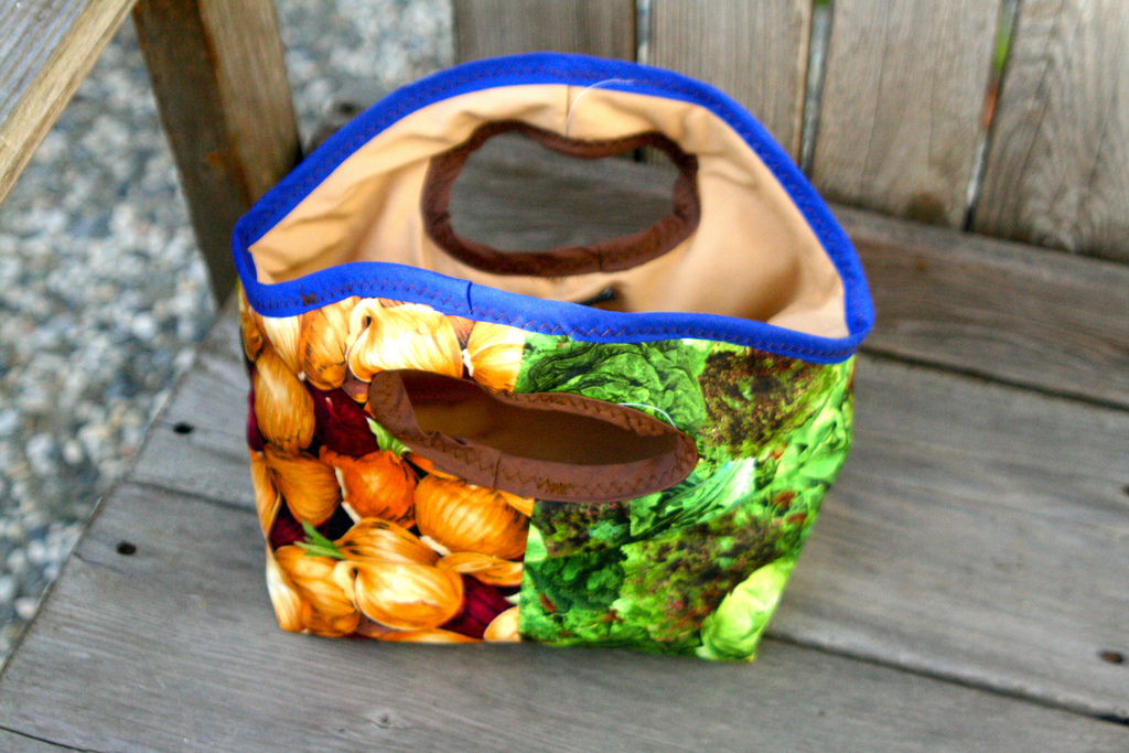 I love giving and making gifts for people. Every year for Christmas I make something for my family members, and this year was no exception. I fell in love with a line of fabric called Farmers Market (that you can find at Stonemountain & Daughter in Berkeley) when I was making an apron for my friend last year and came up with the idea of making small padded lunch totes!