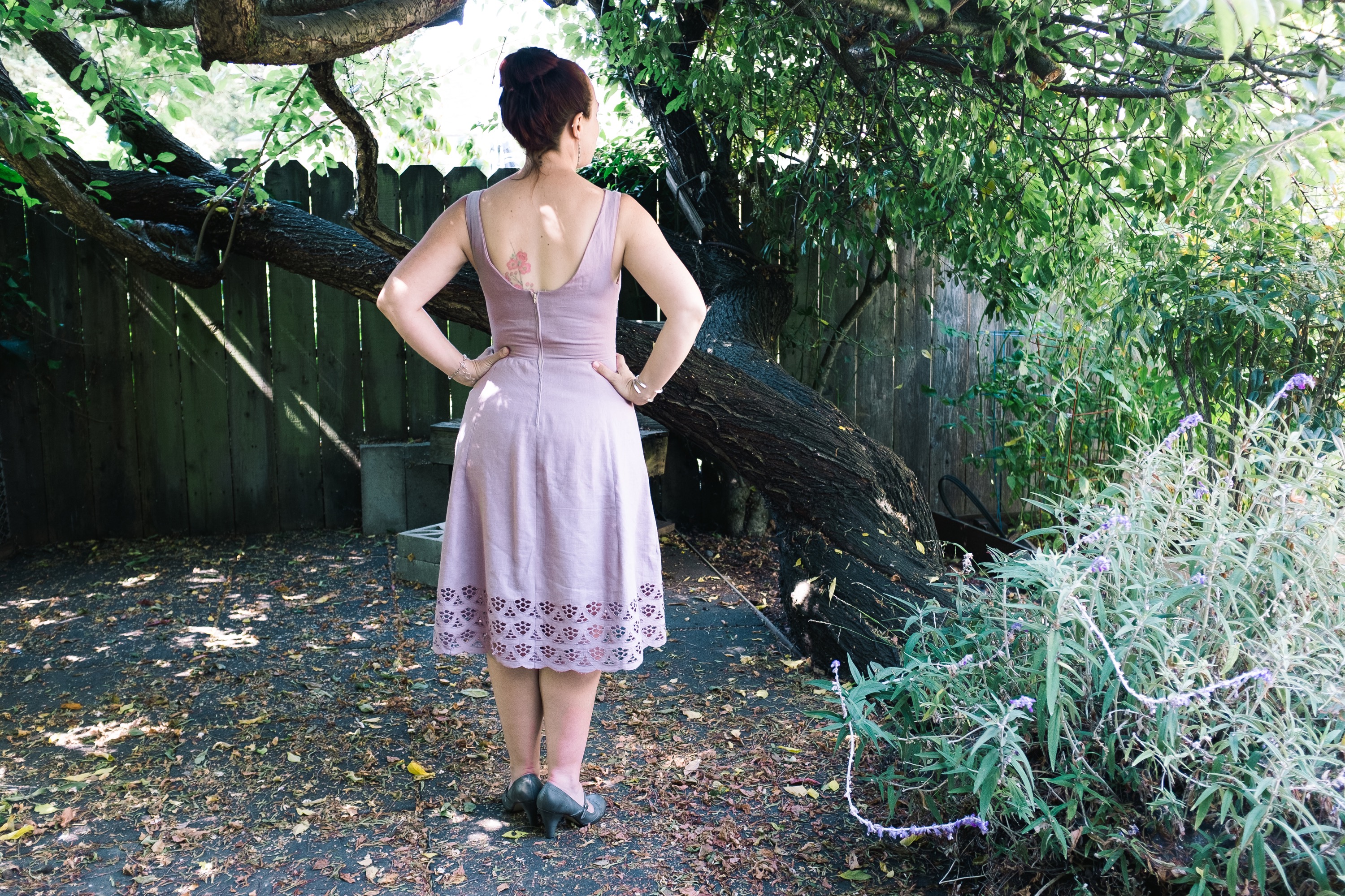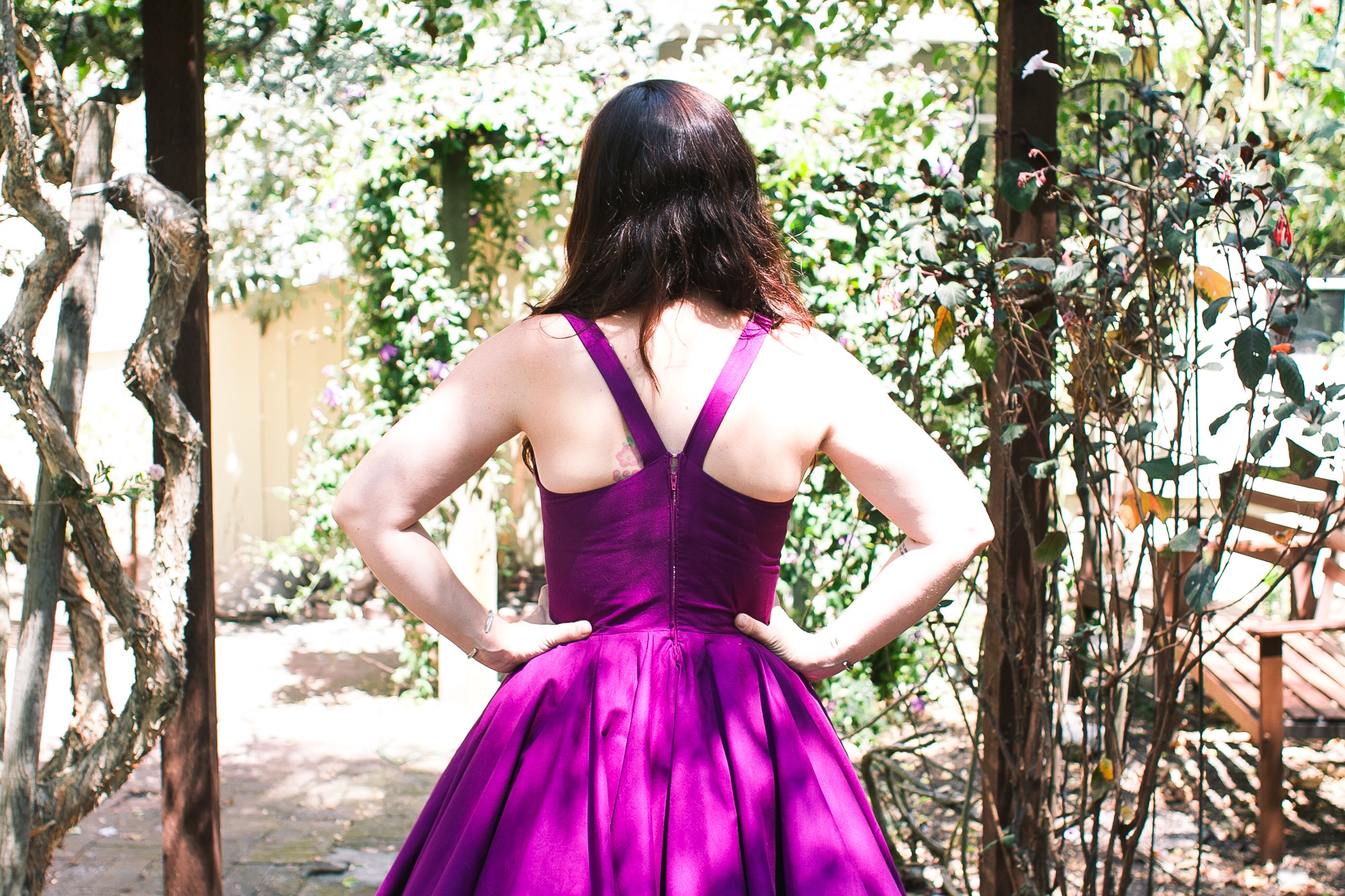 The back. I actually have a bra I didn’t wear very much that’s just about this color purple, so I ended up adjusting the straps to fit just this dress.