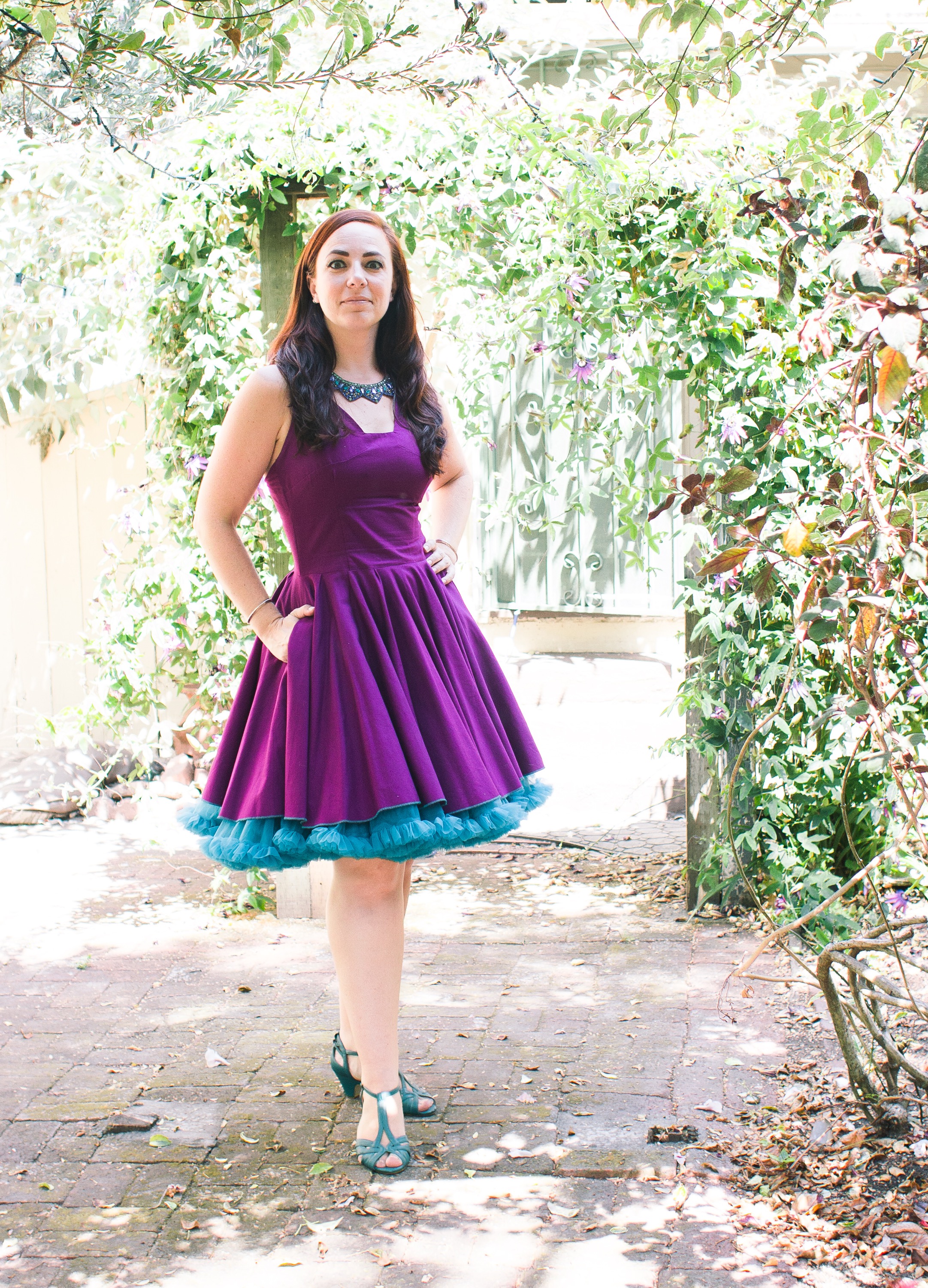 I intentionally left the skirt of the dress a bit on the short side so that the petticoat would show.