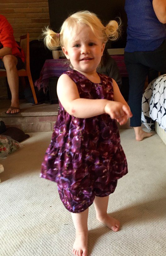 I ended up using a pattern for these as I’m not familiar with making kids clothes and tweaked it a bit of course. I had hoped to find a peach fabric, but found this really nice purple plum instead and was quite happy.